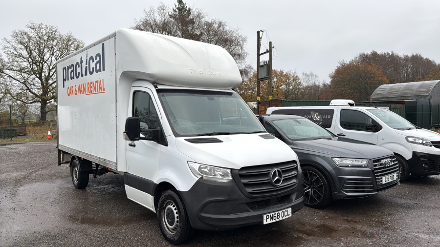 This van is 2018 year registration on a 68 plate with 251k miles (still being used so will go up) and full service history. Manual transmision with a powerful 2.1 turbo diesel engine. Very presentable clean van inside and out. Extremely good condition van for the year. Very reliable - has never let us down. This is not a bottom of the range cheap one - this is a Mercedes Sprinter - probably the best make and model of larger van ever made. This one has an electric tail-lift, roller shutter door, bluetooth touch-screen stereo with Apple Carplay & Andriod Auto, power windows, cruise control and central locking on remote key fob (2 supplied). Drives like only done 50k miles - I have one of these with 314k miles on it and it still looks and drives great. Signwriting livery stickers will be removed before sale - first to see will buy £10,495 + VAT (inc service and new MoT before collection)